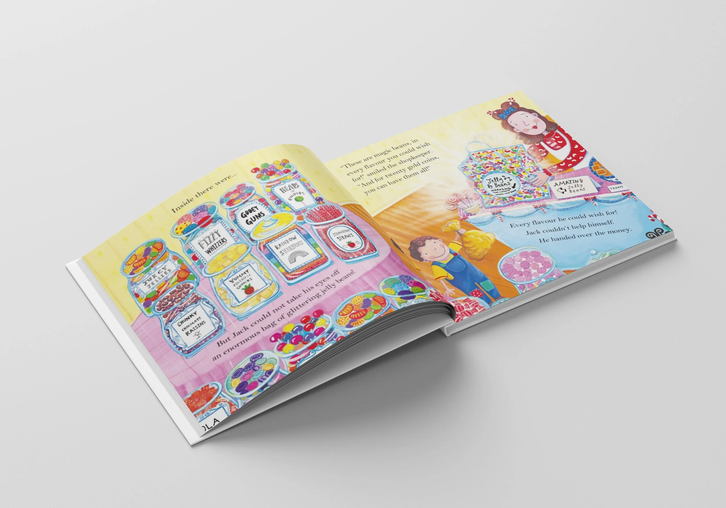 “As a teenager I had a Saturday job in a sweet shop. One of the perks was a large bag of sweets to take home, fuelling my family’s collective sweet tooth. So when it came to finding a twist to this story magic jellybeans were the obvious answer!”